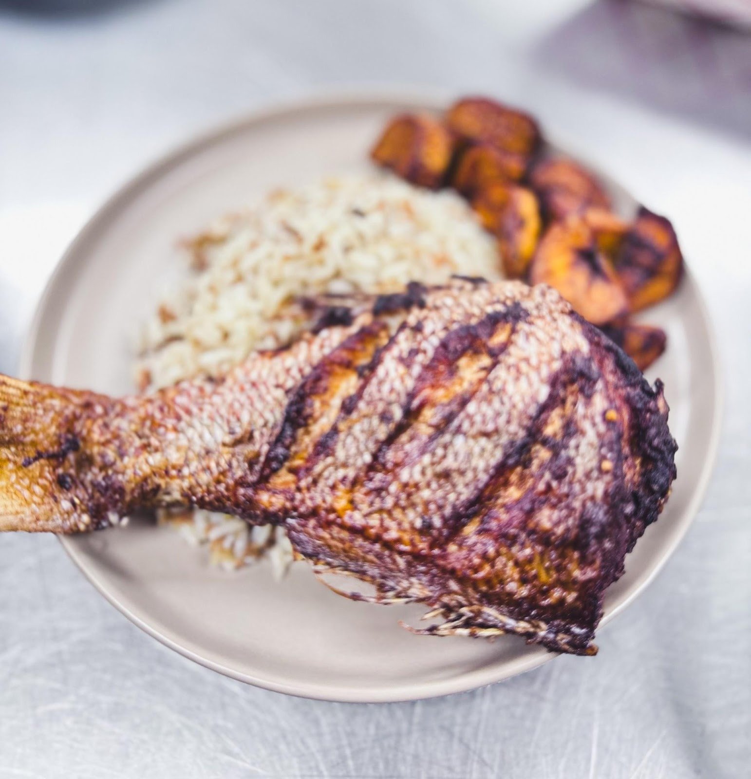 Sweet Plantains: A staple side dish served with our Suya Chicken and Liberian Dry Rice.